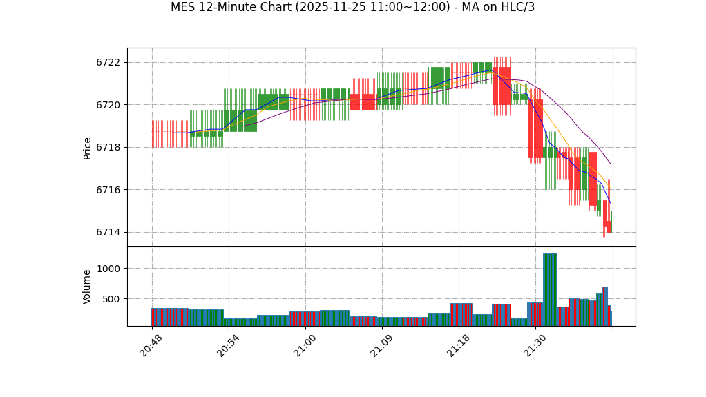 – 短期形态:当前K线范围极窄(高 6715.75 / 低 6714.75),属于窄幅整理/震荡区间,未形成明确突破或趋势延续形态。