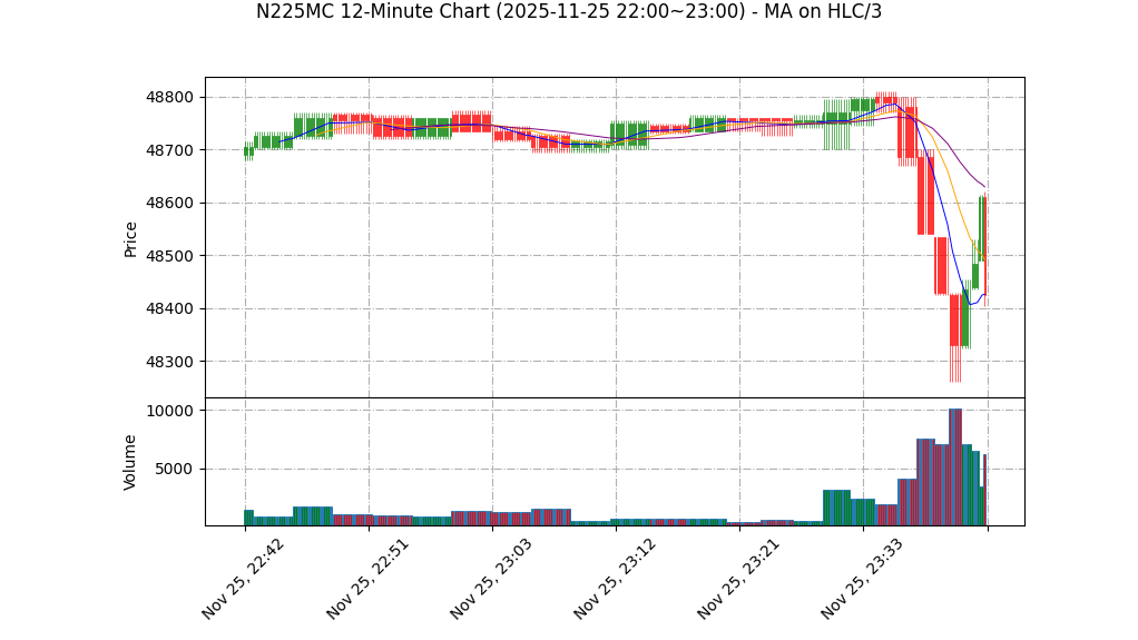 | 11-25 23:00 | 48610.00 | 48620.00 | 48520.00 | 48520.00 | 1897 | 48932.50 | 38.3 | -32.923 | -1.50 |