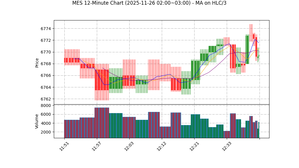 | 11-26 03:00 | 6769.25 | 6770.75 | 6768.50 | 6770.50 | 737 | 6723.38 | 76.7 | 3.307 | -0.75 |