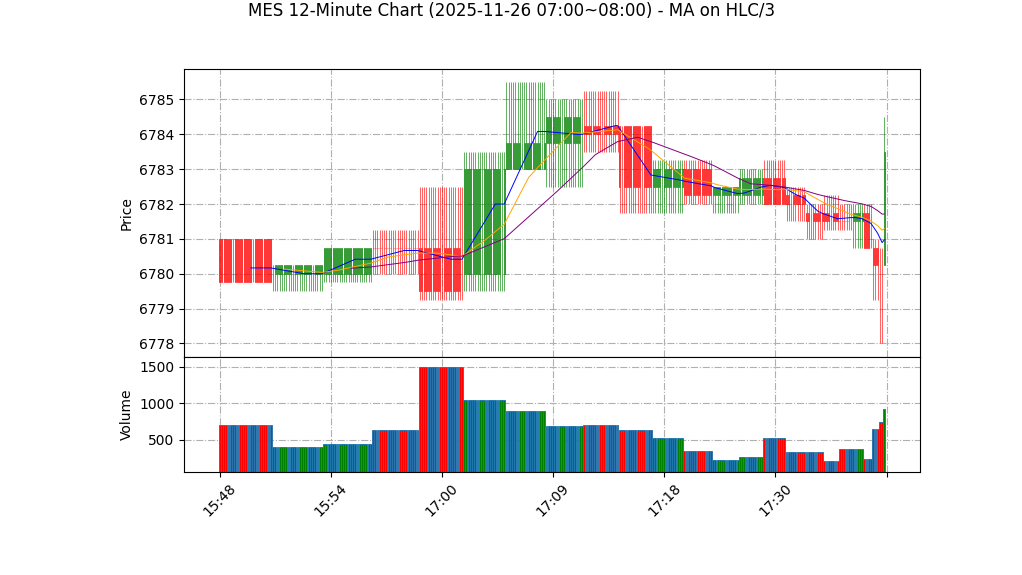 – 形态:近10小时内未见更长序列数据,仅当前K线高低区间极窄(最高6784.50,最低6783.50),属于短周期顶部停滞/震荡表现,常见于超买前的震荡整理或局部顶部。