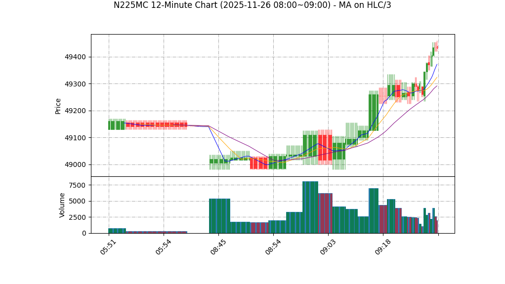 | 11-26 09:00 | 49405.00 | 49460.00 | 49400.00 | 49440.00 | 7295 | 48809.50 | 67.5 | 70.751 | 0.50 |
