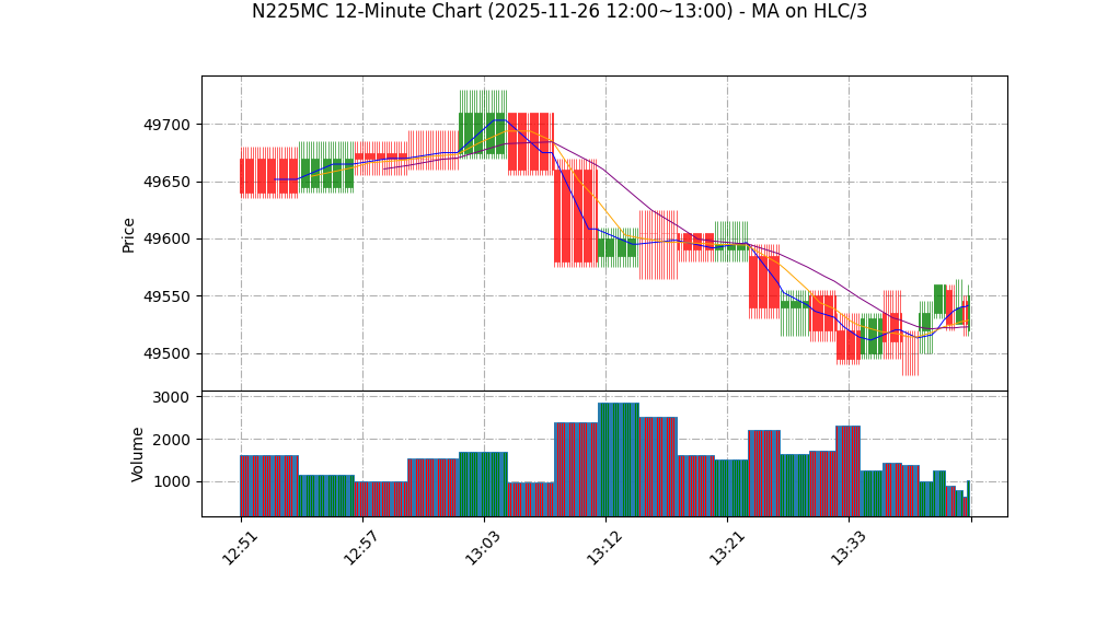 | 11-26 13:00 | 49520.00 | 49545.00 | 49515.00 | 49530.00 | 520 | 48982.50 | 65.1 | 96.517 | -1.50 |