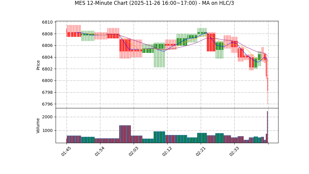 | 11-26 17:00 | 6800.50 | 6801.00 | 6798.50 | 6799.75 | 660 | 6773.88 | 74.1 | -0.072 | -3.75 |