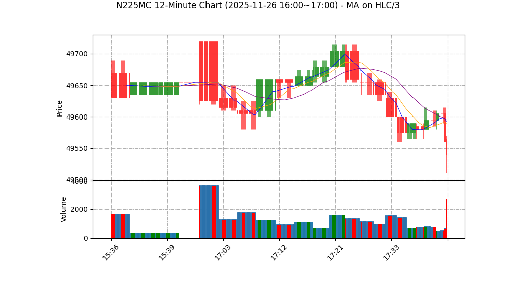 | 11-26 17:00 | 49565.00 | 49570.00 | 49510.00 | 49515.00 | 1666 | 49134.50 | 61.3 | 59.715 | -1.50 |