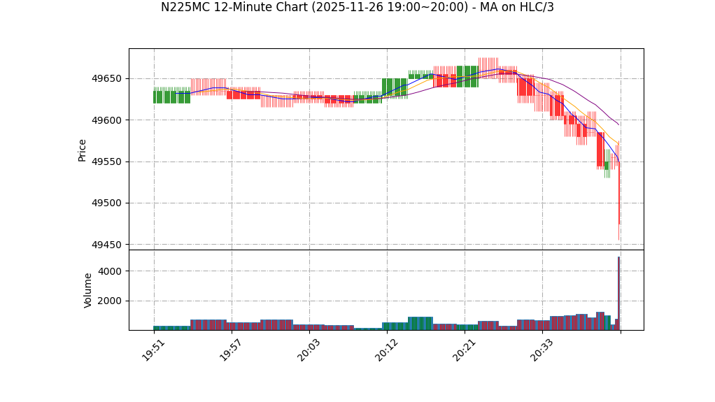 | 11-26 20:00 | 49550.00 | 49565.00 | 49545.00 | 49555.00 | 539 | 49268.75 | 61.0 | 23.430 | -1.75 |