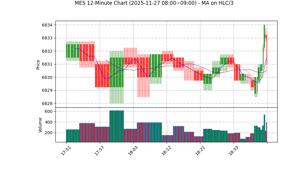 | 11-27 09:00 | 6832.25 | 6834.00 | 6830.50 | 6830.50 | 1158 | 6815.06 | 67.7 | -1.654 | -0.75 |