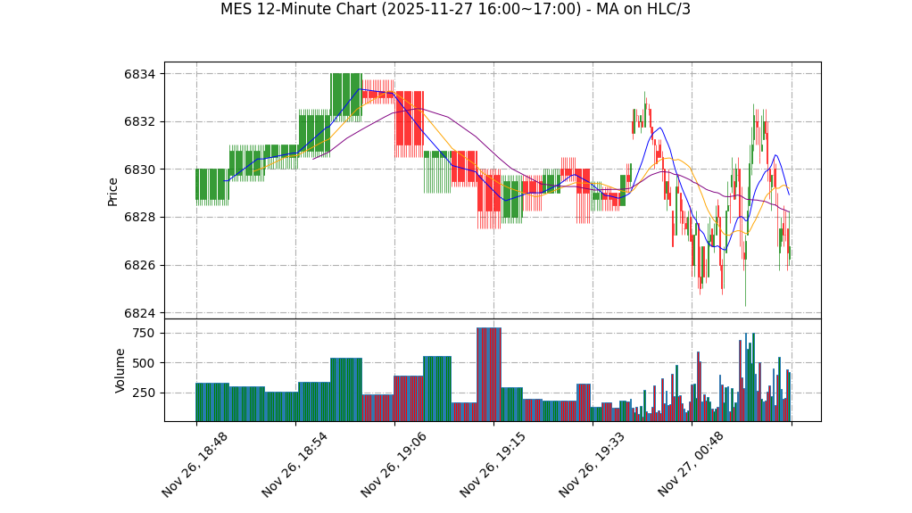 | 11-27 17:00 | 6826.50 | 6828.50 | 6825.75 | 6827.00 | 2112 | 6825.91 | 61.3 | -3.360 | -0.25 |