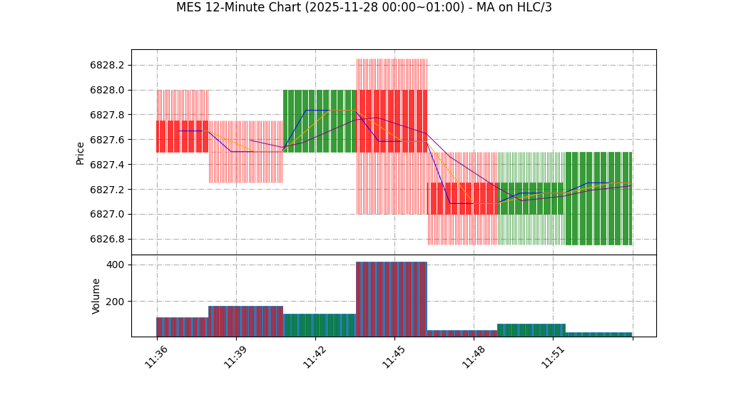 – 形态:可观测时间窗内价格几乎无变动(开6826.75/收6826.75),无明显趋势线或价格形态(无明确高低点、无分水岭)。