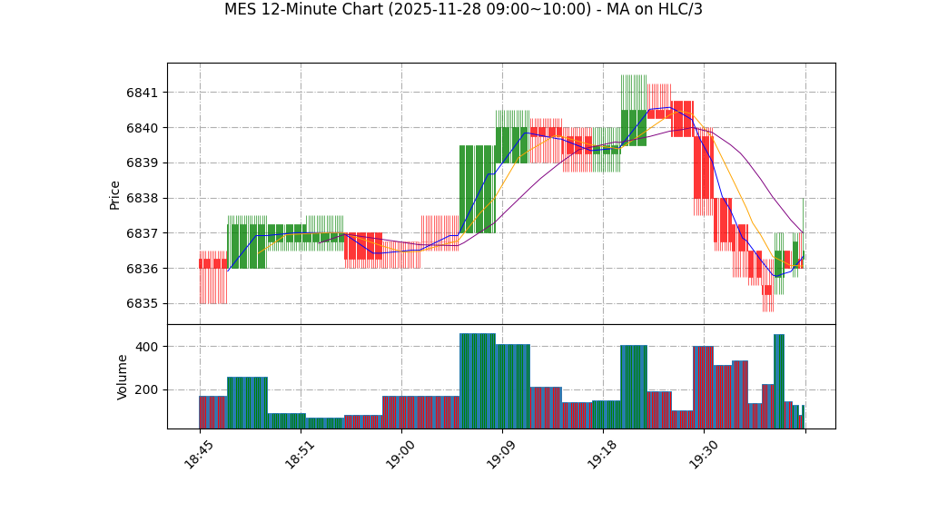 1) 价格位置与短期形态:当前K线(开6836.25 高6836.50 低6835.25 收6835.25)呈窄幅区间,短期无明显单边行情,属于整理或震荡中的微多头结构。
