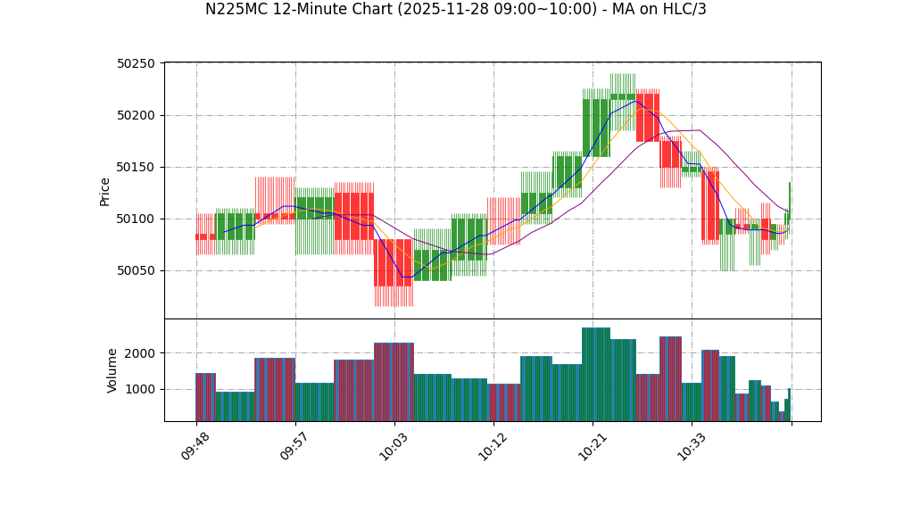 | 11-28 10:00 | 50100.00 | 50115.00 | 50085.00 | 50110.00 | 424 | 50099.00 | 56.9 | -22.461 | 2.75 |