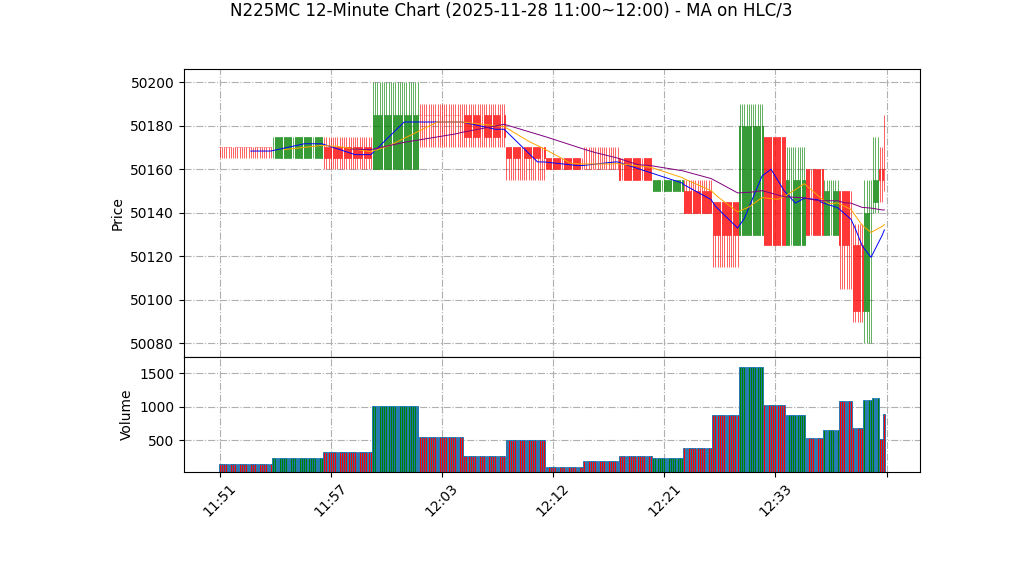 | 11-28 12:00 | 50160.00 | 50185.00 | 50160.00 | 50170.00 | 580 | 50099.00 | 60.0 | -13.875 | 2.75 |