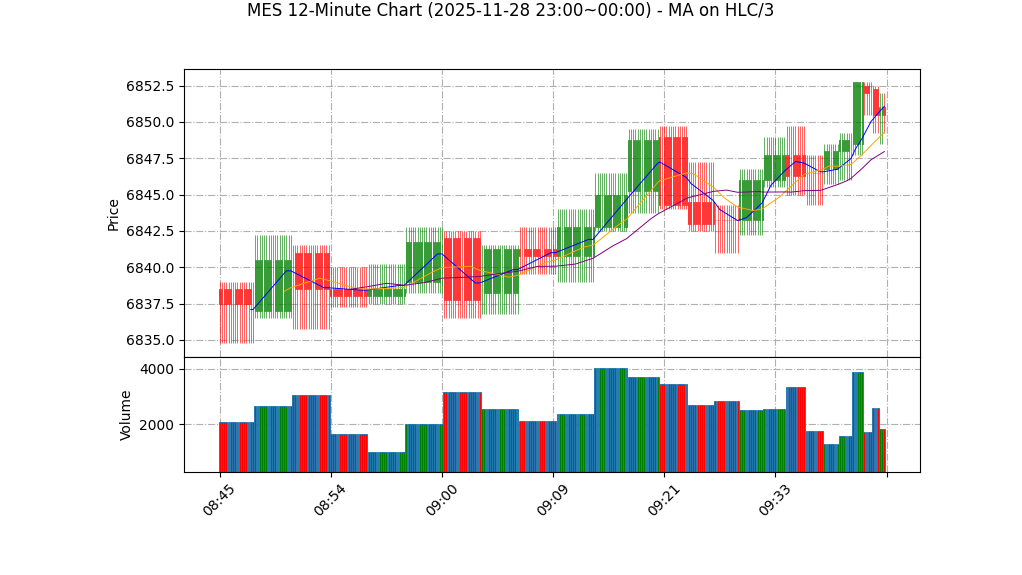 – MA20:当前收盘6851.00高于MA20(6836.34),但差值微小,信号中性(权重20%)。