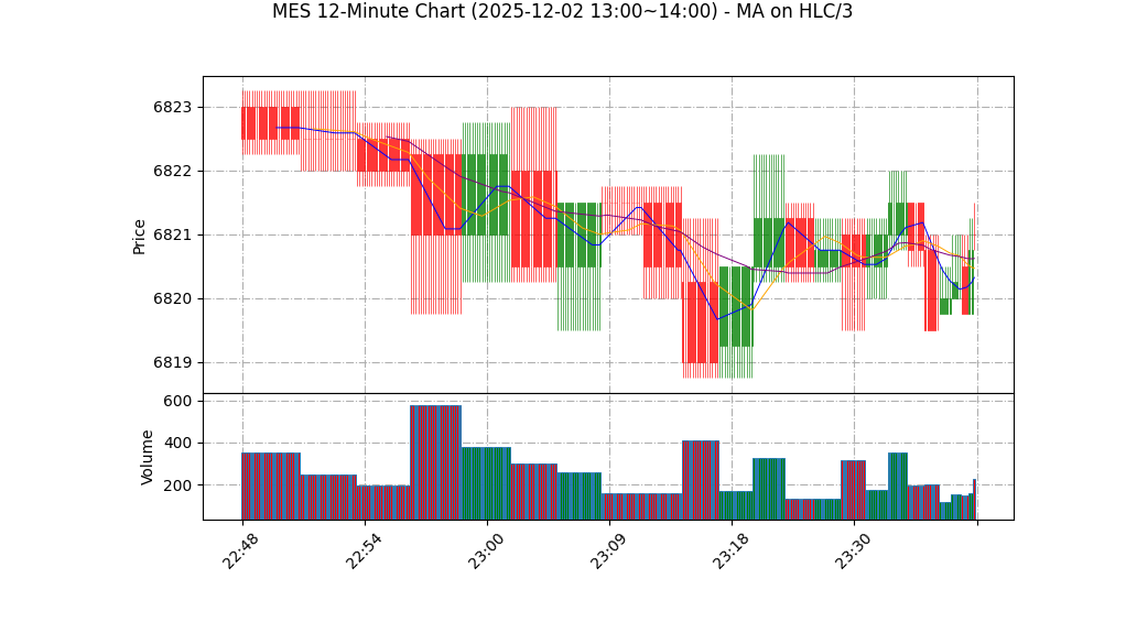 – 价格行为/波动(权重 20%):当前单根K线开收一致(6820.75),最低 6820.50,最高 6821.00,极低波动性与单根“十字/小实体”结构表明市场短期观望,缺乏趋势延续性。