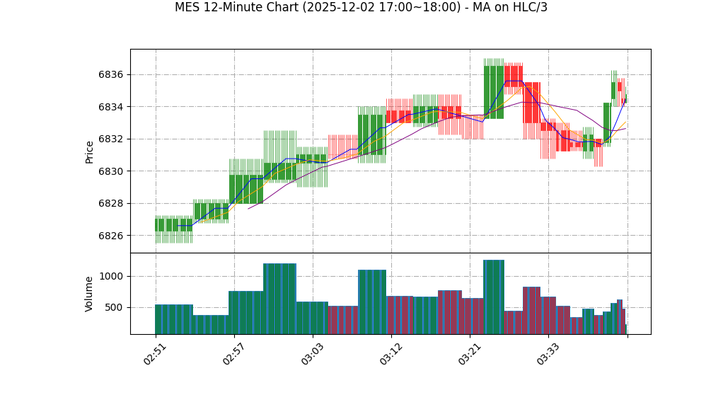 | 12-02 18:00 | 6834.25 | 6835.25 | 6834.25 | 6835.00 | 64 | 6830.02 | 55.5 | 0.311 | 4.25 |