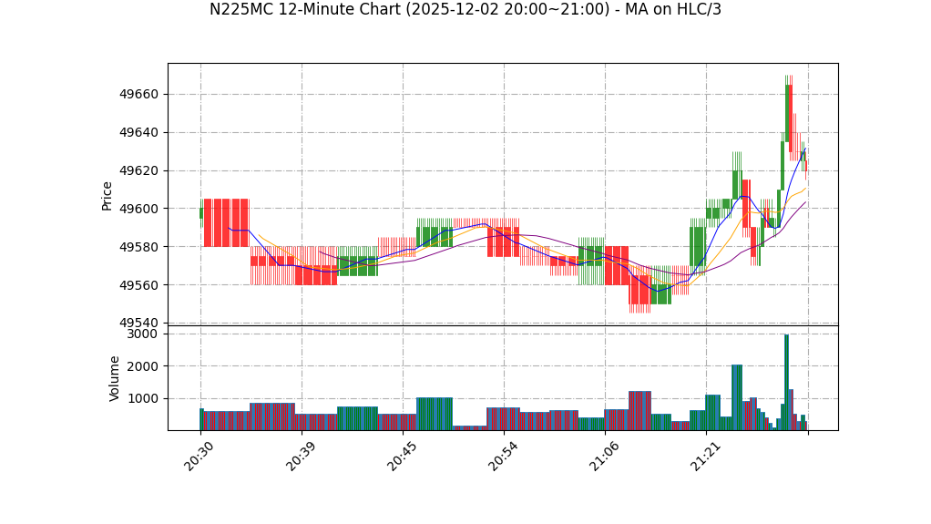 | 12-02 21:00 | 49665.00 | 49670.00 | 49620.00 | 49630.00 | 2642 | 49508.75 | 55.1 | 33.376 | 4.00 |