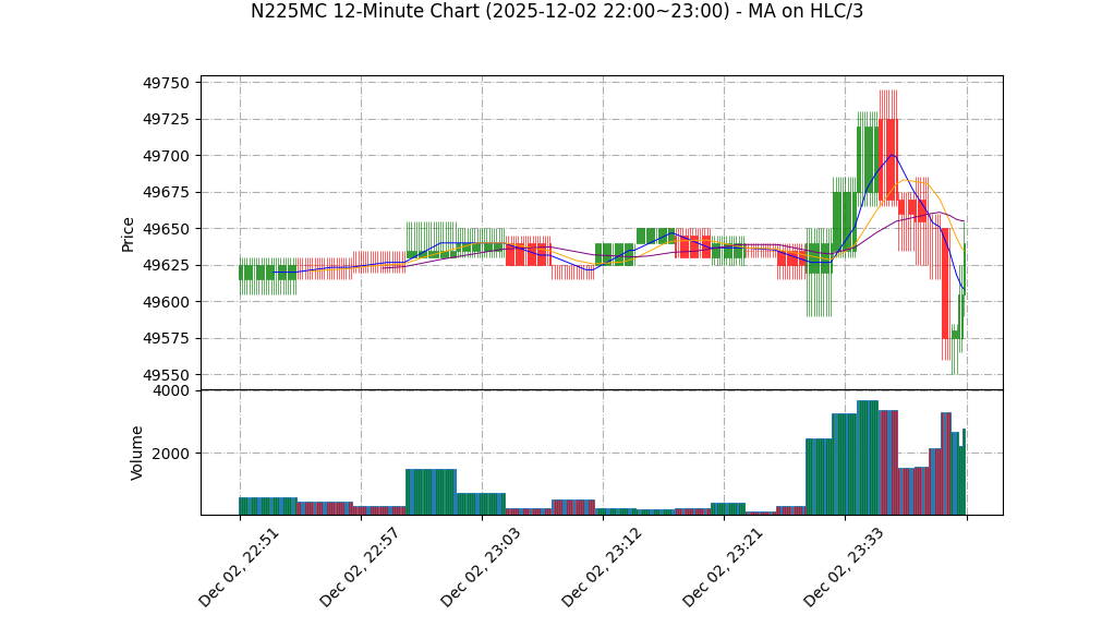 | 12-02 23:00 | 49605.00 | 49635.00 | 49590.00 | 49625.00 | 833 | 49521.75 | 54.8 | 34.645 | 0.50 |