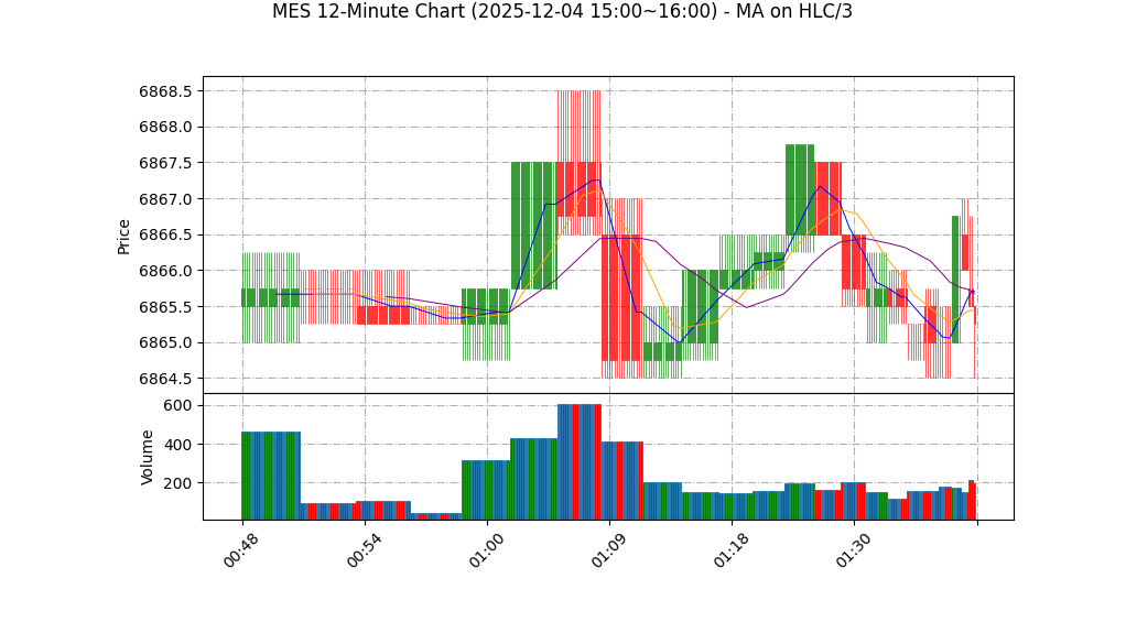 – 价格行为(单小时蜡烛:开6865.50,高6865.50,低6864.00,收6864.25):单根小幅下压阴/十字形态,收于中低位,显示短线卖压微增。权重 15%。