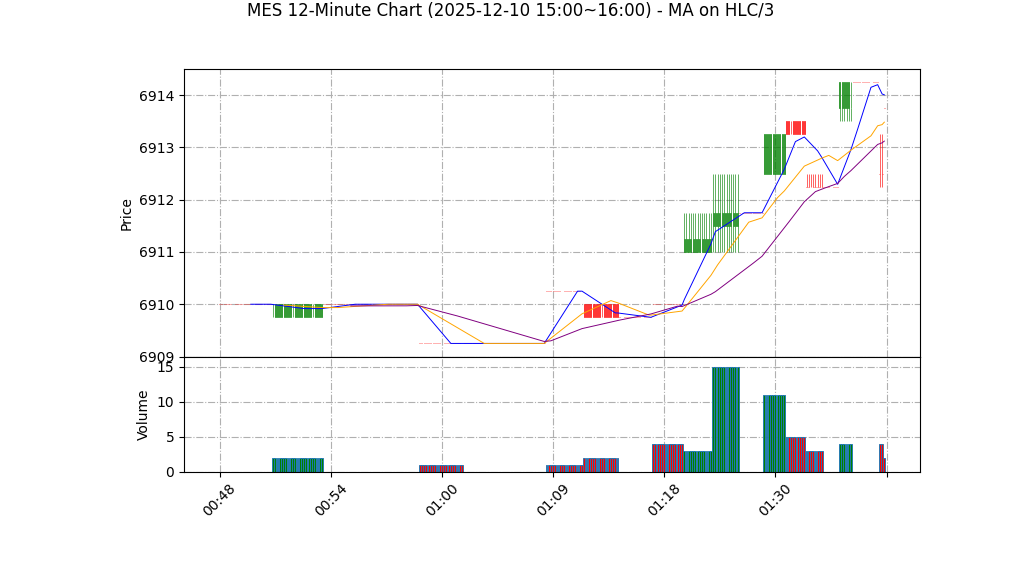 – 支撑/阻力:最近可用的短期动态支撑为MA20≈6912.6;心理整数位6900附近亦可能为次级支撑。短期阻力无法从当前单条记录准确识别——建议观察上方即时成交高点和近几小时高位确认(若价格突破6918–6925并放量,则确认向上延续)。